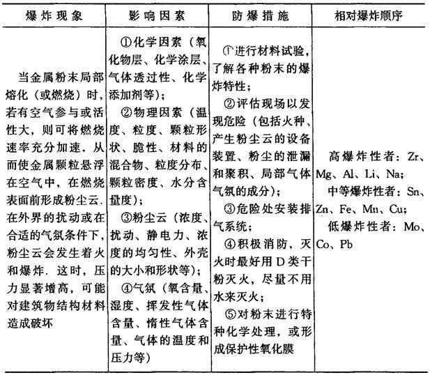 表6-15简单列出了金属粉末爆炸的原因、影响因素及防爆措施.