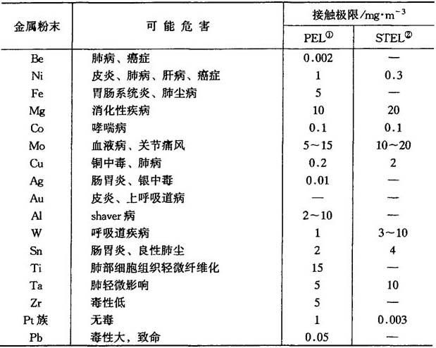 在加工和处理金属粉末时容易发生爆炸和着火,许多因素(如化学成分、粒度和粒度分布、颗粒形状、化学添加剂、表面涂层及气体环境的变化等)都对材料着火和爆炸的敏感性有直接影响,同时,接触或吸入金属粉末会对人体许多器官造成伤害,直接危及人体健康,因此为了安全生产,保障接触金属粉末人员的健康,了解这些危险的性质、机理及防护措施是十分必要的.