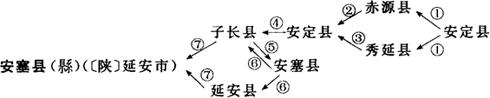 ①1912年称安定县;1935年分设赤源县、延秀县二县。②1936年赤源县更名为安定县。③1937年秀延县并入安定县。④1939年为纪念谢子长烈士,更名为子长县。⑤1942年称安塞县。⑥1958年12月撤销安塞县,辖区分别并入子长县、延安县。⑦1961年9月析子长县、延安县原安塞县的辖区,重置安塞县。