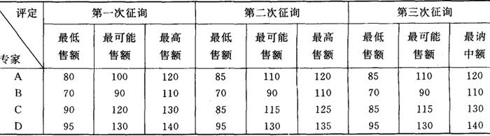 | 释义 | 定性预测方法 预测方法通常可分作定性预测和定量预测两类方法,本节讨论定性预测方法,有关定量预测方法将在以后各节讨论。 现代管理科学的发展,任何分析都要有效地利用定性分析与定量分析:定性分析要运用数据说话,依靠定性分析作基础;定量技术是为一定的定性分析提供较准确的数据。没有定量分析,定性分析难以准确;定量技术所得数据如果不能定性,不能为一定的目标、决策服务,这些数只是一大堆无用的数字。为了方便起见,在本节用市场预测定性方法、市场预测技术分别进行。实际上,它们是不可分割的,有内在联系的,只不过是预定预报偏重于应用定性方法,预测预估偏重于运用预测技术。 一般地说,预测技术性强,运用数学模式多,并要求大量、长期占有数据。而预定预报或定性方法则是在预测基础上,加上主观判断及推理。这个主观判断本身,实质上也是一个客观过程,它是运用过去的资料、情况与经验,结合客观环境变化及企业实际去推测未来,资料与情况反映了一定客观实际,经验则有一定的经验概率。可见,它是一个客观过程,是对客观的回忆、认识、再认识及推定。在现代管理、科学、技术发达的日新月异的时代,在现代环境变幻莫测的时代,要调查市场、了解市场、预测市场、分析研究市场,进而服务于市场、经营市场,除可运用一定的预测技术外,市场预定预报方法即定性方法,仍然是非常重要的。用这种质量分析的方法以取得有关市场的资料,对企业的长期经营计划、经营战略、经营决策等都是十分重要的。特别在当前我国大多数企业还没有积累大量的、必要的、能满足市场预测需要的历史资料的情况下,更具有现实意义。 定性分析的主要方法有: 一、经验估计法 经验估计法由企业主管市场营销的领导及有关从事销售工作的人员,凭长期的工作经验加排产会、各种订货会、展销会,从事对某些地区、部门、企业的推销及用户访问、用户服务、摆摊设点站柜台等的经验,通过对市场供求状况及用户心理、购买行为的分析、判断而进行的有关预测预报。这种方法,在客观环境及市场因素较正常、稳定情况下,易于正确;但在市场或客观环境八大不可控制因素有重大变化时,则误差较大。 经验估计法往往与销售员合成法一齐运用,两者实质上是一致的。它是由企业不同地区的分销机构或派驻员,对其所在地区或部门对企业有关产品的未来销售量进行定期的或不定期的预测预报,由企业或公司把各地的资料加以综合分析、判断后,作本单位的市场预报。这也是依靠销售人员的经验及直觉,又取决于其预报的精确程度。 二、专家意见法 这是由美国兰德公司依靠有关专家提出预测的一种预报方法,以古代希腊特尔裴城命名(该城有着名阿波罗神庙。)它依靠一个技术专家小组,用以消除最有声望、最能说会道、最好的推销人员的可能支配。通过采用专家的一致意见而不是折衷去达到目的。 运用专家意见法能发挥不同专家的作用,其结果是集体判断,能收到集思广益的效果。它能把专家的意见、意见分歧的理由表达出来,取各家之长、避各家之短。它同会议方式如单纯开会讨论比较,更能使各类专家独立思考、各抒己见、相互补充,而避免在会主彼此争吵、力量抵消。因而,更能产生积极成果。 小组一般由各种各样的专家组成,往往是某一问题的专门家而不是全面的专家,缺乏某类专门家时可邀请外单位专家参加。然后,请各类专家就市场预测预报的课题作出各自独立的预报,而由专门的秘书或协调人员进行编汇整理编辑工作,使这些意见通俗易懂,并能综合反映,及用书面交流各类专家的意见。一般地说,不要求各类专家相互磋商,以发挥其独立思考能力;在步骤上,通过出题、提问、出题、再提问,按以下三轮定案。 第一轮:由秘书提出要求,明确预测目标,提供情况和问题。请各专家在各自分类的问题中,列表写出可能出现的、对企业生产经营产生重大影响的各类技术事件及测定;要求对每一事件逐一按照合乎需要性、可行性、时机选择等三个因素的基础来权衡。凡属重复项目则经过编辑整理后将多余的淘汰,最后筛选出预报资料项目。 第二轮:由负责专门编辑的小组及秘书将预报资料综合表编辑分送给有关专家,主要分送给与各专家有关的资料,同时附送其它小组对这个专家负责范围的问题有关资料。要求各专家对有关问题在合乎需要性、可行性、时机选择三方面进一步提出建议及评价。 第三轮:由整理组将有关分歧与有关专家个别交换意见、使需要解决的课题或预测预报的有关事件及日期的分歧得以消除。通过反复探索、集思广益而得出的结果,就会在合乎需要性、可行性、事件发生概率、时机选择等方面综合研究,得出每个事件的必要测定与等级,并把它们组成逻辑网络。 专家意见法,在没有什么历史资料可供参考的情况下,也可以用定量技术来解决。其程序与上述大体相似,首先把要求对方答复的问题提交给有关专家(下例如对某产品市场销售量的最低、最高、最可能的销售量);请专家提出意见;把专家的意见综合归纳作第二次征询;然后再综合归纳,直到专家们改动次数低于提出咨询问题的5%时,就可以综合作为最后预测结果了。举例如图表3-1所示。 图表3-1 专家意见法评定表