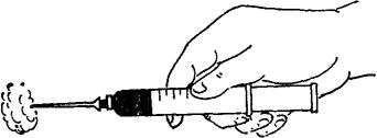 | 释义 | 实验动物注射法 注射材料一般必须无杂菌污染,若为含病毒的材料可能已被细菌污染,则应加入抗生素(青霉素1000u/ml,链霉素1000μg/m1)置40℃1h后,再行注射。供病原分离的组织悬液,应以2000~3000r/min离心沉淀10min,取上清液注射。 一、实验动物被毛除去法 1.剪毛法用剪毛弯头剪紧贴动物皮肤先粗略剪,然后再细剪,为了避免被毛乱飞,事先可用纱布蘸生理盐水将剪毛部位予以湿润。 2.脱毛法适用于家兔、小白鼠等小动物的脱毛剂配方:硫化钠8g、淀粉7g、糖4g、甘油5g、硼砂1g、水75g,共100g,调成稀糊状。 用法:先将被毛剪短(小自鼠不需剪),用棉球蘸脱毛剂在脱毛部位涂成薄层,经2~3min后,用温水即可洗去脱下的被毛。 对大动物脱毛可使用硫化碱(染土布用)10g、生石灰15g、加水至100ml溶解。也可使用硫化钠8g、淀粉7g、糖4g、甘油5g、硼砂1g、水75m1共100g调成稀糊状,用纱布蘸上此种脱毛剂涂在需脱毛的部位,使被毛湿透,经2~3min,用水将脱下的被毛冲洗掉。脱毛部位事先一定不要用水洗,以免脱毛剂渗透入皮毛根里,刺激皮肤,造成皮肤炎症等变化。 二、使用注射器注意事项 1.检查注射器是否漏气。可用左手握注射器管,其食指将注射器的口堵住。右手轻拉注射器栓,若注射器栓能回复原位,则无漏气现象。拉注射器栓的手不可放开,以免注射器栓自然弹回将针管打破。 2.先计算需用剂量,再吸取注射液。吸入注射液后,需用无名指或中指轻扶注射器栓(图3-9),以防注射器栓自然滑动,因而吸入空气或使注射液溢出。