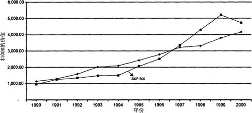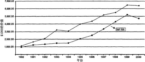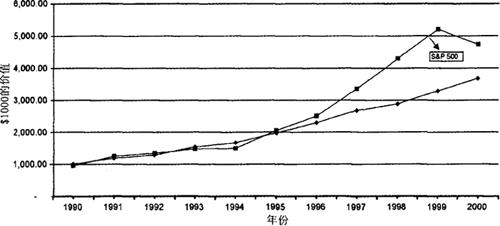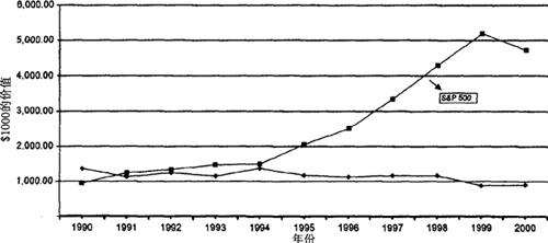 图25.1 HFRI股票多空指数 全球宏观对冲基金 正如其名称隐含的那样,全球宏观对冲基金在其投资策略中采用以全球为基础的宏观经济方法。这些是采用自上而下方法的经理,他们机会主义地投资于不同的金融市场、货币、国家和商品。对冲基金经理根据其对利率变化、汇率走向、货币政策和宏观经济指标的预测建立大额头寸。 全球宏观经理的投资范围最为广泛。他们不受市场领域或行业领域的限制,也不受地区、金融市场或货币的限制。此外,全球宏观经理还可投资于商品。事实上,全球宏观对冲基金之基金提供了最大程度的投资策略多元化。 全球宏观基金通常拥有规模庞大的投资者资本。这对其宏观经济策略的实施是必需的。此外,他们还可应用杠杆以加大其宏观投赌的规模。因此,全球宏观对冲基金在金融市场中通常最为受到关注和公开报导。 在这些对冲基金中最着名的是乔治·索罗斯管理的量子对冲基金。根据大量文献的记载,该基金于1992年通过对英镑的贬值进行投赌(它确实发生了贬值)赚取了高额收益。该基金还被指责导致了1997年秋季的“亚洲金融风暴”。当时,泰国政府降低了其货币(铢)的汇率,从而引发了整个东南亚的汇率变动的多米诺效应。 然而最近,全球宏观基金陷入了低潮。(4)其中一个原因是:1998年俄国债券的违约和2000年3月科技股泡沫的破灭使许多全球宏观基金受到了重创。这两个事件导致了全球宏观基金的高额损失。 正如以上指出的那样,第二个原因是:全球宏观对冲基金拥有在所有对冲基金策略中范围最广的投资权限。广泛投资于不同货币、金融市场、地区和商品的能力是一把双刃剑。一方面,它使全球宏观基金能够在最广的投资范围内实施其策略。另一方面,它缺乏重点。随着进入对冲基金市场的机构投资者的增加,它们要求更突出的投资重点,而不是自由投资。 图25.2提供了1990-2000年期间的全球宏观对冲基金与S&P500的比较。在这段时期内,全球宏观对冲基金赚取了更高的收益率。