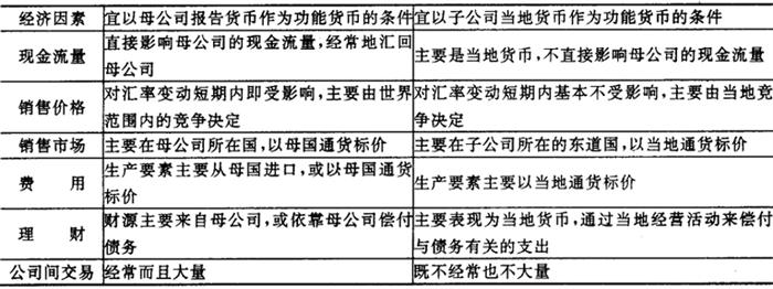 | 释义 | 对外币折算的主张 从上一节论述中可以看出,四种不同的折算方法各有其概念上的假定和缺陷,而且折算后的结果也有很大的差异,所以,长期以来,人们一直在试图找到一种最为完善的折算方法,有些国家甚至试遍了上述四种方法,可结果仍是褒贬不一。不过,就近年来像美国、加拿大、英国这样一些国家所发布的有关外币折算的最新规定来年,其折算方法的选择范围已趋缩小,主要是根据一定的概念和实务理由在时态法和现行汇率法之间作出选择。下面,较为具体地分析这些国家对外币折算所持的立场。 一、美国对外币折算的主张 前已述及,洛伦森在《会计研究论文集》第12号中推荐了时态法。尔后,在1975年10月,财务会计准则委员会发布了第8号公告《外币交易和外币财务报表折算的会计》,正式推荐采用时态法。按照第8号财务会计准则公告,外币折算的目的是:“为编制一个企业的财务报表,将其以外币计量的资产、负债、收入以及费用重新以美元来表述,并使之符合美国的公认会计原则(GAAP)”。第8号公告要求将时态法作为外币折算的唯一方法,并要求将折算损益于发生当期在收益表中予以确认。第8号公告一开始就引起争议,有些跨国公司称赞这一公告具有明确的特性,许多跨国公司则指责它使帐面结果与真实的经济结果不符,从而使公司的报告收益带来歪曲,并且使跨国公司的报告收益比单纯从事国内经营活动的公司显得更加多变,这主要是由于第8号公告不再允许递延折算损益,而规定必须将折算损益计入汇率变动当期的合并收益,因此,只要汇率变动,跨国公司的报告收益就会出现波动。 鉴于对第8号公告的众多争议和指责,1981年12月,财务会计准则委员会又发布了第52号公告,以替代第8号公告。第52号财务会计准则的主要规定如下: (1)外币财务报表在折算为以报告货币来表示之前,首先必须符合公认的会计原则。 (2)外币财务报表在折算为以报告货币来表示之前,必须以功能货币来计量。对如何确定功能货币,第52号公告就现金流量、销售价格、销售市场、费用、理财、联属集团内的公司间交易等经济因素列举了各项选择标准,如图表5-3-5所示。 图表5-3-5 确定功能货币的标准