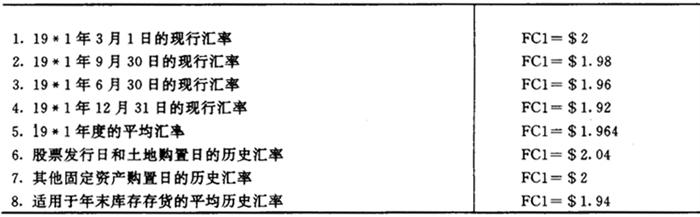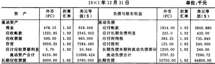 第52号财务会计准则公告还要求:国外主体的功能货币一经确定,必须一贯使用,除非经济环境的改变显然表明功能货币已经改变。在改变功能货币时,如有理由说明这一改变符合于会计原则委员会(APB)第20号意见书《会计变更》的条件,可无需对其影响进行追溯计算。 (3)折算程序可以视两种不同情况而定。在第一种情况下,即某一国外主体在会计记录中使用的当地货币(外币)不是功能货币,而母公司的报告货币美元(本国货币)是功能货币时,子公司的财务报表可以按第8号财务会计准则公告所推荐的时态法进行折算,重新以母公司的报告货币来计量,其要求就像所有的交易在发生时就都按母公司的报告货币表示那样,(但有一个例外,就是对属于长期负债递延所得税项目,原先按照第8号公告是按历史汇率折算,但第52号公告也要求以现行汇率折算)。此外,折算损益应作为营业外项目在当期的合并收益中邓以报告。在第二种情况下,即某一国外主体在会计记录中使用的当地货币(外币)是功能货币时,其当地货币财务报表将采用现行汇率法折算为美元(本国货币)报表,由此形成的折算损益则作为合并股东权益中的一个独立项目————“折算调整额”揭示在资产负债表中。 (4)上述外币财务报表折算程序有一个例外,即当某一国外主体所在国三年内累计的通货膨胀率超过100%时,均以美元作为其功能货币。 由上可见,择定功能货币(子公司的当地货币还是母公司的本国货币)是选用不同折算方法的关键。为进一步了解上述为第52号财务会计准则公告所规定的折算程序,下面举例来分别说明美元是功能货币和当地货币是功能货币时的不同处理方法。 〔例8〕我们首先假定某一国外子公司(WM公司)在19×1年度会计期末编制的已符合美国公认会计原则的财务报表如图表5-3-6、图表5-3-7和图表5-3-8所示。为便于折算而选用的汇率如图表5-3-9所示。 图表5-3-6 WM公司资产负债表(以当地货币表示) 19*1年12月31日
