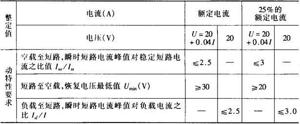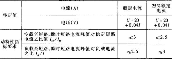 表11-8 整流弧焊机动特性指标(JB1372-80)