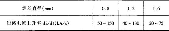 表11-9 推荐CO2焊短路电流上升率