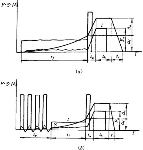 图7-19 闪光对焊伸出长度 2Δ-总留量 2Δf-烧化留量 2Δ′-有电顶锻留量 2Δ″-无电顶锻留量 闪光速度(vf)是在稳定闪光条件下,动夹具的进给速度,又称烧化速度。在实际生产中,以动夹具曲线位移予以实现,一般 S=kf·tb 式中 S——动夹具位移(mm); kf——系数,对于低碳、低合金钢为0.5~1.5(mm/s),高合金钢为2.5~3(mm/s); t——闪光时间(G); b——指数,一般低碳钢为2,铬镍钢为5/2。 注意,通常资料中给出的是平均闪光速度。 顶锻压力,一般与材料的热强性、加热的状态、顶锻速度有关。常用材料顶锻压力见表7-35。 表7-35 闪光对焊推荐的顶锻压力(MPa)