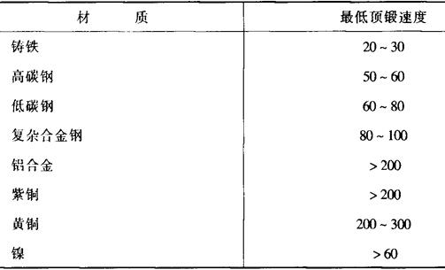 顶锻速度(vu)是将端面上的液态金属和氧化夹渣排除,使金属端面紧密贴合。常用材料最低顶锻速度见表7-36。 表7-36 闪光对焊推荐的最低顶锻速度(mm/s)