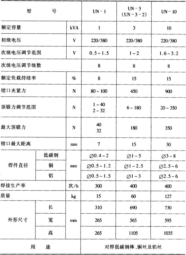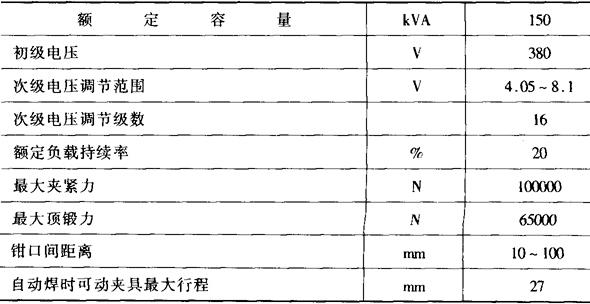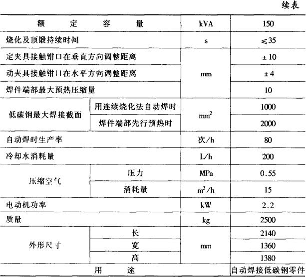 表7-45 UN2-150-2型电动凸轮顶锻式对焊机技术数据