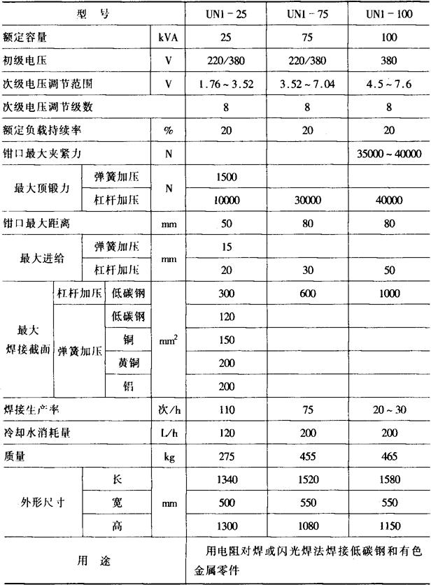 表7-43 杠杆挤压弹簧顶锻式对焊机技术数据