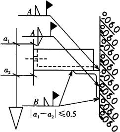 图4.1-15 导轨支架水平误差 (2)导轨支架垂直度误差应满足误差小于0.5mm,即如图4.1-16所示,a1-a2应该小于0.5mm。可以使用钢直角尺测量。