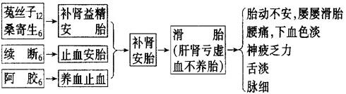 【要点】 肾为先天之本,主生殖,主封藏。肾虚则胎元不固,血虚则胎滑易动,本方专为肾虚血少之滑胎而设。 【应用】 1.先兆流产,习惯性流产。 2.不孕症。 3.性功能减退。 【注意】 血热或瘀血导致的胎动不安禁用。 【类方】 1.安胎饮(《寿世保元》):由当归、白芍药、橘皮、熟地黄、川芎、苏梗、黄芩、炒白术、砂仁、甘草组成。功能养血安胎。主治妊娠气血虚弱不能养胎。 2.安胎饮(《揣摩有得集》):由泽兰叶、炒黄芩、沙参、白芍药、生甘草、炒砂仁、地骨皮、麦门冬、竹叶、灯心草组成。功能清热凉血安胎。主治妊娠血热,胎动不安。 3.安胎白术散(《证治准绳》):由白术、川芎、吴茱萸、炙甘草组成。功能补荣卫,养胎气。主治妇人胞宫宿冷,胎痿不长,或伤胎多坠。 4.安胎寄生汤(《外台秘要》):由桑寄生、白术、茯苓、炙甘草组成。功能益气安胎。主治妊娠胎动下血。 5.安荣汤(《妇科玉尺》):由熟地黄、白芍药、川芎、桑寄生、当归、阿胶、香附、白术、砂仁、黄芩、糯米组成。功能清热养血安胎。主治胎动不安而有热者。 6.大安胎如胜饮(《妇科玉尺》):由当归、焦白术、酒黄芩、酒白芍药、炒砂仁、茯苓、续断、炙甘草组成。功能养血补肾安胎。主治胎气不和,或渐痛胀,胎动不安。 7.补肾固冲丸(《妇产科学》):由菟丝子、续断、鹿角霜、巴戟天、杜仲、枸杞子、白术、当归、阿胶、党参、砂仁、大枣、熟地黄组成。功能补肾壮阳安胎。主治肾气不足,冲任不固而滑胎。 |