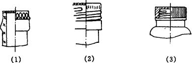 图2-3-13 封瓶形式 (1)压盖封瓶 (2)滚纹封瓶 (3)旋盖封瓶 用皇冠形圆盖的波纹形周边连接瓶子所形成的封口,称为压盖封瓶。这种封瓶,在瓶盖与瓶口端面之间衬有橡胶或软木制成的弹性密封垫片,变形后对瓶内产品起密封作用;卡在瓶口凸缘下端面上的瓶盖波纹形周边,通过瓶盖牢固的连接,使密封作用得以维持。 压盖封瓶密封可靠,易于启封,是盛装含碳酸气液体饮料——啤酒、汽水和酒类用玻璃瓶容器包装时常见的封瓶形式。 1.2 滚纹封瓶〔图2-3-13(2)〕 通过套在瓶口上的特制铝盖,用滚压出与瓶口螺纹形状完全相同的螺纹的密封方法,称为滚纹封瓶。由于启封时,铝盖将沿着裙部周边预成型的压痕断开,所以称这种封瓶的盖子为扭断盖;又由于这种封瓶便于识别启封与否,因此又把这种盖子称为“防盗盖”。 这种封瓶用的扭断盖,在设计上有二种形式。一种只在裙部圆周方向上压印一定深度的痕迹,封瓶后,只要沿与螺纹相反的旋向施加一定的转动力矩,瓶盖即沿周边压痕扭断,但压边环仍套在瓶颈上,使瓶子回收使用不便;另一种新设计的铝盖,在裙部的周向和轴向都有压痕,启封后,压边环沿周向和轴向压痕自行断开,便于旧瓶的回收使用。 滚纹封瓶不仅具有密封严密可靠、启封方便、包装外形美观等优点,而且,由于能识别瓶内产品是否用过,所以特别适用于盛装像葡萄酒、白兰地等高档酒类玻璃瓶的封瓶,也常用于像可乐之类饮料塑料瓶的封瓶。 1.3 旋盖封瓶〔图2-3-13(3)〕 瓶盖与容器以螺纹连接方式形成的封瓶,称为旋盖封瓶。这种封瓶是靠旋转瓶盖时,通过盖底与瓶口之间的密封垫或置于瓶口内的瓶塞产生弹性变形,来得到密封连接的。 旋盖封瓶也是玻璃瓶容器常用的封瓶形式之一。特别适用于盛装不含碳酸气的果汁饮料和药品所用的窄口瓶。 1.4 铝箔封瓶 铝箔封瓶主要是利用电磁感应的原理将瓶口上的铝箔片瞬间产生高热,然后熔合在瓶口上,达到封瓶功能。因此,铝箔封瓶又称电磁感应式铝箔封瓶。 铝箔封瓶主要适用于塑料瓶、玻璃瓶。可适应不同粘度的液、酱、膏状填充物。 2 封瓶机种类 由于封瓶形式有多种,所以封瓶机也有几种类型,按工作原理和所完成的封瓶形式可分为压力封瓶机、滚压封瓶机、旋合封瓶机和铝箔封瓶机。 2.1 皇冠盖压力封瓶机(图2-3-14)