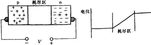 图10.2-8为加偏压后p-n结各区的电位分布。加反向偏压的半导体探测器就象一个平板电容,它的电容C取决于探测器灵敏体积的参数:
