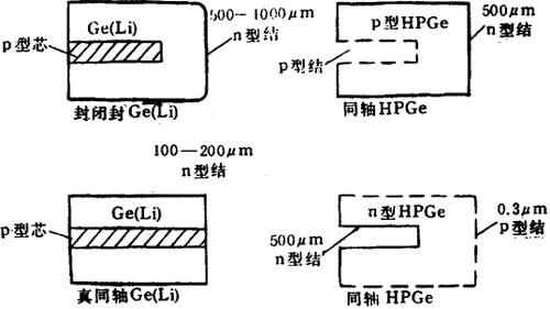 图10.2-7 Ge(Li)和高纯锗(HPGe)探测器结构示意图