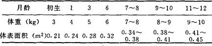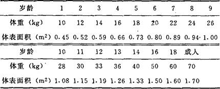 1周岁以上至成人体重、体表面积可参考表2。 表2