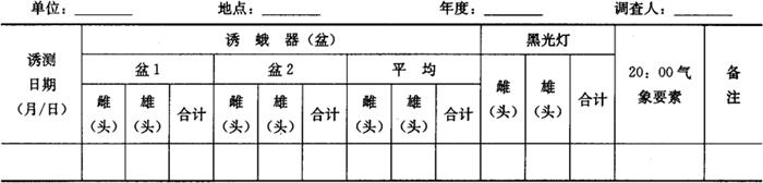 | 释义 | 小地老虎测报调查方法 小地老虎[Agritis ypsilon(Rottemburg),Agritis ipsilon(Hufnagel)]属鳞翅目,夜蛾科,切根夜蛾亚科。小地老虎是地老虎中分布最广的一种,世界六大洲及大洋洲的很多岛屿均有发生。在我国各省(自治区、直辖市)均有发生。但主要分布区多集中在江、河两岸的冲积平原及低洼内涝地区以及城市郊区的菜田。随着北方水浇地面积的扩大,为害区范围也随之增加。 小地老虎是一种典型的杂食性害虫,寄主植物十分广泛,除水稻等水生植物外,几乎对所有植物的幼苗都能取食为害。我国主要受害的作物有棉花、玉米、高粱、芝麻、烟草、麻类、薯类、多种蔬菜、中草药、牧草以及果树、林木的幼苗。 1 主要影响因子 1.1 虫源 上年末代和越冬代蛾量大,特别是当地越冬代有效蛾量和雌蛾比例较常年平均值显着增高,则可导致严重发生的虫源基数。 1.2 气候 上年秋季雨水较多,沿湖和沿河内涝地区积水;春季越冬代蛾盛期无较强寒流侵袭;第一代卵盛孵期雨水调和或偏少,无大雨和低温出现,利于小地老虎的发生。春季2~4月的气温高低影响小地老虎第一代发生期的早晚,气温高则发蛾早,卵和幼虫发育进度快,发生期提前。 1.3 环境条件 耕作粗放,杂草多,间作套种的地块发生重。 2 调查项目和方法 2.1 成虫诱测 2.1.1 诱蛾器诱测 诱测越冬代成虫,可结合黏虫诱测进行(诱蛾器构造、设置和诱剂配制同黏虫)。设置两台诱蛾器。设置时间可从当地平均气温稳定在5℃开始(可根据当地历年资料,掌握在始蛾前进行),至越冬代成虫终止期止。每天早晨检查诱到的雌雄蛾量,记入小地老虎成虫诱测记载表(表3-43)。 表3-43 小地老虎成虫诱测记载表