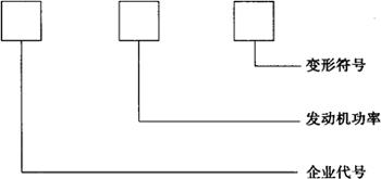 拖拉机型号的编制由企业代号、发动机功率和变型符号3部分组成,如下所示:
