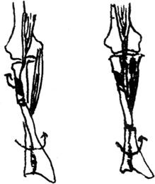 | 释义 | 尺、桡骨单骨折 尺骨干骨折 前臂单骨折发生机会不多,单纯尺骨骨折更少见,约占单纯桡骨骨折的1/3。多因直接暴力致伤,木棍袭击,患者举手防护时,击中尺骨,骨折多呈横断或三角形,暴力严重可伴有桡骨小头脱位,因尺骨上肌肉附着较少,故损伤后移位不大,但下1/3骨折,受旋前方肌的牵拉,骨折远端旋前并向桡侧移位。 【病因病理】 直接暴力:骨折向桡侧移位,有时合并桡骨小头脱位,环状韧带完全断裂,骨折发生在下1/3时,远端旋前畸形,并向桡侧侧方移位。 间接暴力:跌倒时前臂旋后,手掌尺侧着地,损伤应力偏于尺骨,而发生骨折。如果上、下尺桡骨关系正常,桡骨完整,单纯尺骨骨折不会有太大移位,反之如果有明显的移位,则上下尺桡关节可能有脱位。 【诊断】 1.症状:伤后尺骨周围肿胀、疼痛,前臂功能障碍。 2.体征:局部压痛,因尺骨位置表浅,可触及骨折线和骨擦音,纵轴挤压痛阳性。 3.影像学检查:单纯尺骨骨折,要注意上下尺桡关节有无移位。注意骨折远近端旋转改变。前臂正位片,根据下尺桡关节重叠的多少判断远端旋转改变情况,根据近端桡骨结节显露的方向和大小判断骨折近端的旋转情况。 【治疗】 无移位的骨折可用夹板固定或石膏托固定,六周可愈合;有移位者,可手法整复,夹板固定,复位时要将患肢置旋前位牵引,用分骨手法向尺侧拉,复位后患肢应在旋前位固定,以减少旋前方肌的牵拉作用,维持骨折端稳定。一般情况下,无需手术治疗,如果开放性损伤,则清创、缝合后用力臂架固定,伤口换药亦不影响。 预后:尺骨下1/3骨折,由于周围软组织少、血运差,复位,固定不稳,容易发生不愈合,需要手术修整残端,植骨,加压钢板固定或用力臂架外固定,局部注射重葡液,以刺激骨痂生长。 桡骨干骨折 单纯桡骨干骨折也不多见,约占尺桡骨折的16%,且以青少年多见。由于单一骨折,尺骨完整,保持支撑作用,骨折后不会出现短缩或明显的移位。 【病因病理】 直接暴力或间接暴力均可致伤,由于桡骨干上有三组旋转肌群附着,故不同平面的骨折有不同的旋转改变。 桡骨上1/3骨折:附着在桡骨结节的肱二头肌及桡骨上端的旋后肌牵拉骨折近端旋后移位,而附着在桡骨中下部的旋前圆肌和旋前方肌牵拉远端旋前移位。 桡骨中、下1/3骨折:骨折线在旋前圆肌止点以下,因肱二头肌,旋后肌被旋前圆肌抵消,故骨折近端处于中立位,而远端受旋前方肌的影响而旋前移位。如图