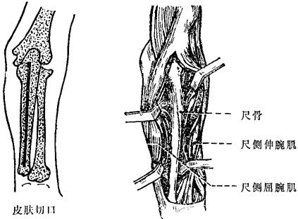 图10~56 尺、桡骨干双骨折切开复位(显露尺骨)