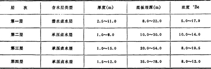 | 释义 | 山东莱州湾的地下卤水 山东莱州湾沿岸地下卤水,位于北纬36°57′~37°27′,东经118°37′~119°46′的范围以内。即东起掖县虎头崖,经昌邑、潍县、寿光、广饶、垦利等6个县区的海岸线。按5°Bé以上卤水划定范围,浓度最高为19°Bé,一般为9~14°Bé。其主要情况见表2-1-12~14。 表2-1-12 莱州湾沿岸主要卤层厚度、底板埋深和浓度