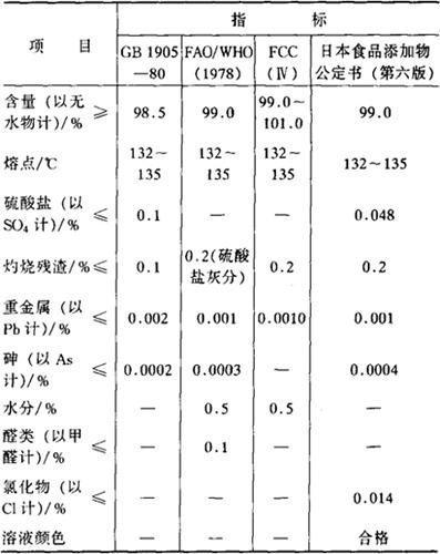 鉴别方法 在本品醇溶液(1+100)中加溴水,应退色。 毒理学依据 1.LD50 大鼠口服7360mg/kg(bw)。 2.GRAS FDA-21CFR 181.23;182.3089。 3.ADI 0~25mg/kg(bw)(山梨酸及其钾、钠、钙盐的总量,以山梨酸计。FAO/WHO,1994)。 使用 防腐剂。 1.使用注意事项 (1)山梨酸只有透过细胞壁进入微生物体内才能起作用,其分子态的抑菌活性比离子态强。当溶液pH小于4时,抑菌活性强,若大于6时,抑菌活性降低。 (2)与过氧化氢溶液混合使用,抗微生物活性显着增强。 (3)山梨酸主要对霉菌、酵母和好气性腐败菌有效,而对厌气性细菌和乳酸菌几乎无作用。在微生物数量过高的情况下,本品发挥不了作用,故只适用于具有良好卫生条件和微生物数量较低的食品的防腐。 (4)应避光、密封保存,贮存温度应低于38℃。 (5)山梨酸为酸性防腐剂,其作用受pH影响。但其酸性较苯甲酸弱,适宜pH范围较苯甲酸广。配制山梨酸溶液时,可先将其溶解在乙醇、碳酸氢钠或碳酸钠的溶液中,随后再加入食品中。溶解时不要用铜、铁容器。在20℃时,配制1000mL山梨酸溶液,溶解山梨酸所需要的碳酸氢钠的数量如下表所示: