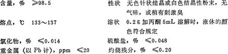 | 释义 | 山梨酸 别名 花楸酸、己二烯-(2,4)-酸 结构式 CH3CH=CH-CH=CHCOOH 分子量112.13 性能 无色针状结晶或白色结晶性粉末,无臭或稍带刺激性臭味。山梨酸对光、热稳定,但在空气中长期放置易被氧化着色。山梨酸微溶于水,饱和水溶液pH值为3.6,溶于有机溶剂。山梨酸对霉菌、酵母和好气性菌均有抑制作用,但对嫌气性芽胞形成菌与嗜酸乳杆菌几乎无效。山梨酸属于酸型防腐剂,能与微生物酶系统中的巯基结合,从而破坏许多重要酶系的作用,达到抑制微生物增殖及防腐的目的。其防腐效果随pH值的升高而降低,宜在pH5~6以下的范围内使用。山梨酸是不饱和脂肪酸,可参加体内正常代谢,最后分解为二氧化碳与水,故几乎无毒。LD50(大白鼠,经口):10500mg/kg。ADI:0~25mg/kg。 质量规格 GB1905-80