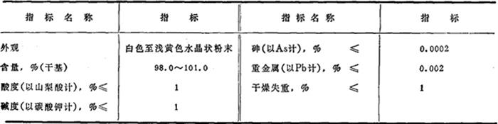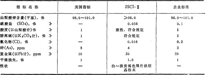 | 释义 | 山梨酸钾 别名 己二烯-(2,4)-酸钾 结构式 CH2CH=CH-CH=CHCOOK 分子量150.22 性能 无色~白色鳞片状结晶性粉末,无臭或稍有臭气,在空气中不稳定,能被氧化着色。有吸湿性。山梨酸钾易溶于水,溶解于乙醇。抗菌作用及毒性参照山梨酸。LD50(小白鼠,经口):5860mg/kg。 质量规格(参考)