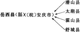 位于东经115°50′~116°33′、北纬30°39′~31°11′之间。 因地处“潜岳之西”,故名岳西县。 1936年1月划潜山县、太湖县、霍山县、舒城县4县边境地区置岳西县。 1936年隶安徽省。1949年隶皖北行署区。1952年复隶安徽省。 参见877页“潜山县”。 |