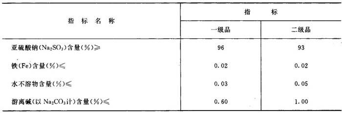 表3-1-8 无水亚硫酸钠的质量标准(HG1-209-65)