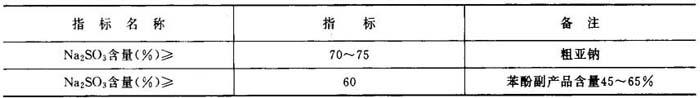 造纸工业蒸煮所用的亚硫酸钠简称亚钠,常用价格低廉的棕红色或淡黄色。制造苯酚的副产品或粗亚硫酸钠,其质量标准如表3-1-9。