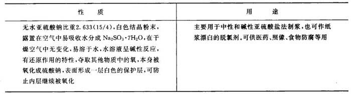 表3-1-10 无水亚硫酸钠的性质与用途