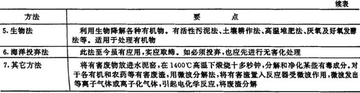 | 释义 | 工业有害废渣的主要处置方法 即使资源化工作不断发展,也难免有各种固体废物的积存,尤其是工业有害废渣,必须采取适当处置以保护资源和保护环境。 1.定义和分类 工业有害废渣指可能对人类健康及环境造成危害的废渣。包括: (1)易燃性 着火点低于60℃,经摩擦或吸湿和自发的化学变化具有着火倾向,点火时燃烧剧烈而持续,易引起火灾的和含氧化剂的废弃物等。 (2)毒性 试样萃取液中的任何一种污染物超过标准浓度。污染物指砷、镉、铬、铅、汞、六氯化苯、甲基氯化物、毒杀芬2.4-D和2.4.5-T等。 (3)腐蚀性 含水废弃物,或不含水但加入定量水后的浸出液,其pH≤3,或pH≥12的废弃物;最低温度为55℃时,对钢制品的腐蚀深度大于0.64cm/年的废弃物。 (4)传染性 含有病原体的实验及医院排出的废物;含有致病性有机物和生物的固体废物。 (5)反应性 通常是不稳定的,能够发生爆炸反应的;和水混合时释放有毒烟雾的;属于A级或B级的炸药、引火物质、自动聚合物和各种氧化剂。 (6)放射性 含有天然放射性元素的废物,比放射性大于1×10-7Ci/kg者,应按放射性废物处理。含有人工放射性元素的废物,比放射性(Ci/kg)大于露天水源限制浓度100倍(半衰期≤60天)或10倍(半衰期>60天)者,应按放射性废物处理。 2.处置方法(见表7.5.3-1) 表7.5.3-1 工业有害渣处置方法