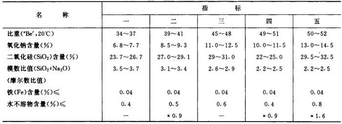 | 释义 | 工业用硅酸钠(俗称泡花碱、水玻璃) 本产品是由碳酸钠法、氢氧化钠液相法制得的硅酸钠液体。 1.质量标准 表3-3-7 工业硅酸钠质量标准(HG1-871-76)