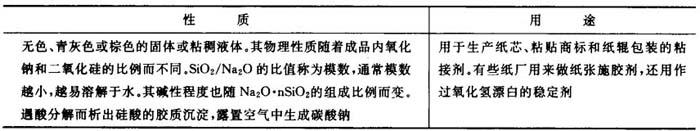 注:*为碳酸钠法指标。 2.性质与用途 表3-3-8 工业硅酸钠的性质与用途