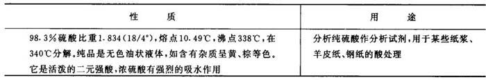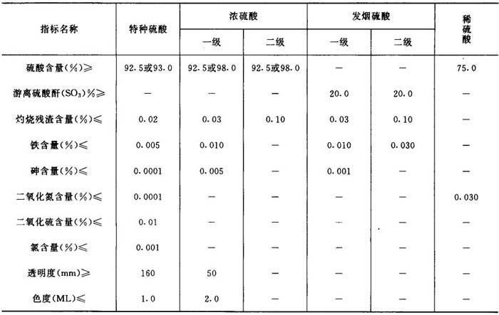 | 释义 | 工业硫酸 本产品是由铅室法、塔式法、接触法和浓缩法制得的工业硫酸。 1.质量标准 表3-3-13 工业硫酸的质量标准(GB534-82)