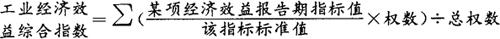 | 释义 | 工业经济效益综合指标 指一定时期内一组经济效益指标分别除以各项指标的标准值,乘以各自的权数,加总后除以总权数的值。计算该指数可以反映出一个地区、一个行业、一个企业的经济增长状况和增长速度。为使各地区、各企业有一个统一的指标体系和统一的经济效益评价标准,原则上采取国家统计局《改进工业经济评价考核指标的实施方案》规定的六项经济效益指标进行计算。其公式如下: