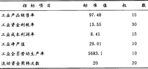 按照各项经济效益指标在综合经济效益中的重要程度,分别确定标准值和权数,总权数为100。各项经济效益指标的全国标准值和权数定为(表13-8): 表13-8