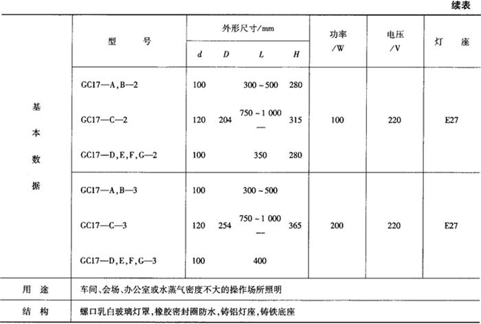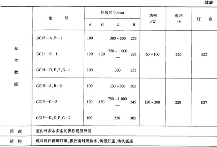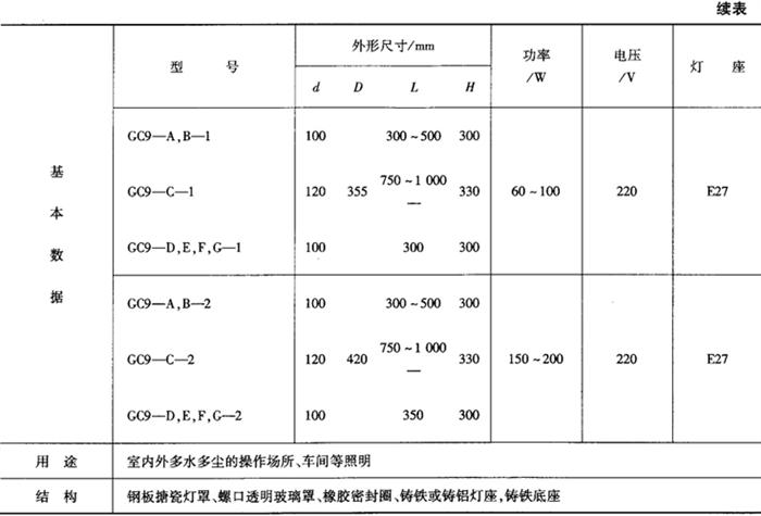 表9-50 GC9广照型防水防尘灯