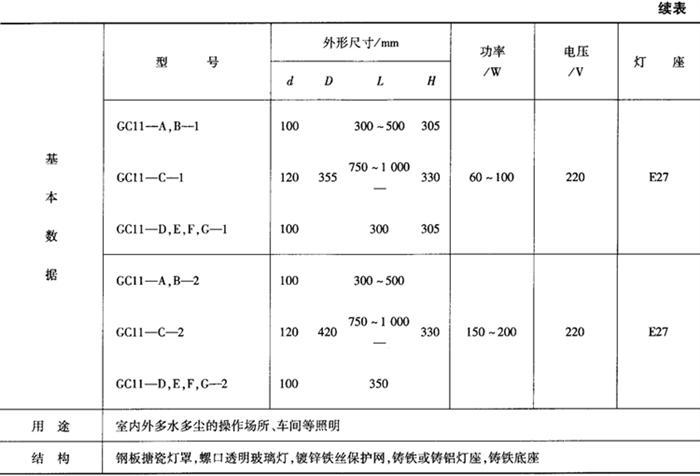 表9-51 GC11广照型防水防尘灯(有保护网)