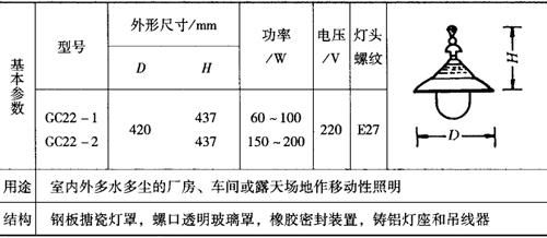 表9-57 GC22广照型防水防尘挂灯