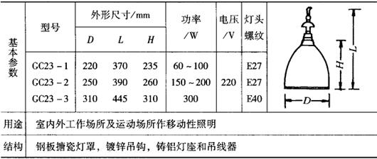 表9-58 GC23深照型挂灯