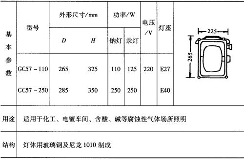 表9-61 GC57B-1F防腐蚀灯