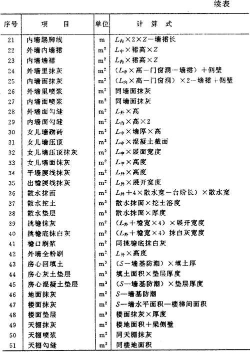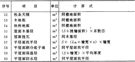| 释义 | 工程量计算统筹式 工程量计算统筹式中: S-底层建筑面积; L中-外墙中心线; L内-内墙净长线; L外-外墙外边线; Z-层数。 表2-40 工程量计算统筹式表