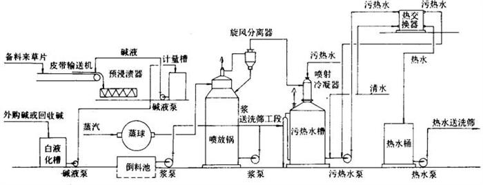 图5-3-6 蒸煮工序工艺流程 (2)稻草蒸煮工艺方法、技术条件(表5-3-1)。 表5-3-1 稻草蒸煮工艺方法与技术条件