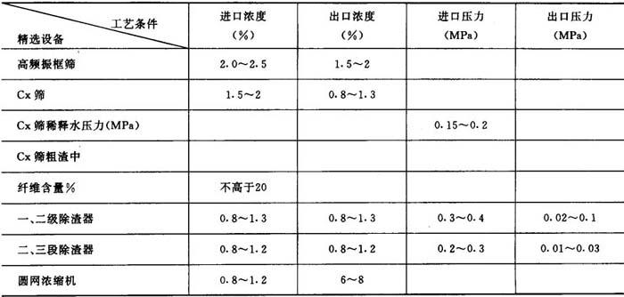⑤浆料筛选和精选工艺条件(表5-3-4)。 表5-3-4 浆料筛选和精选工艺条件