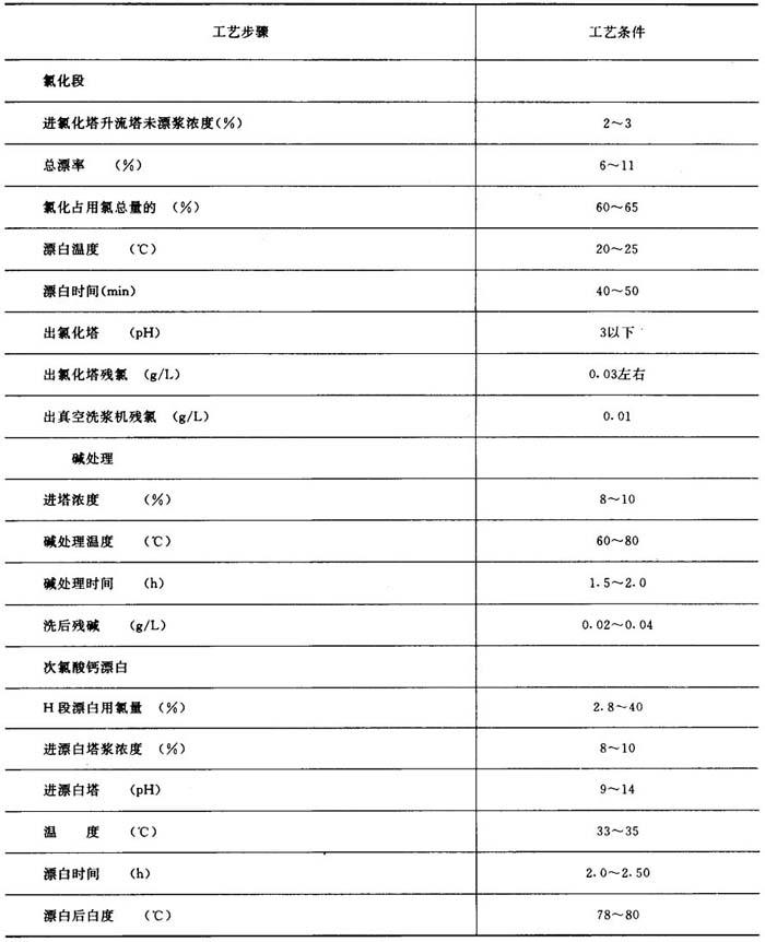 ②麦草浆漂白工艺方法、技术条件 a.塔式连续漂白 表5-3-6 塔式连续漂白