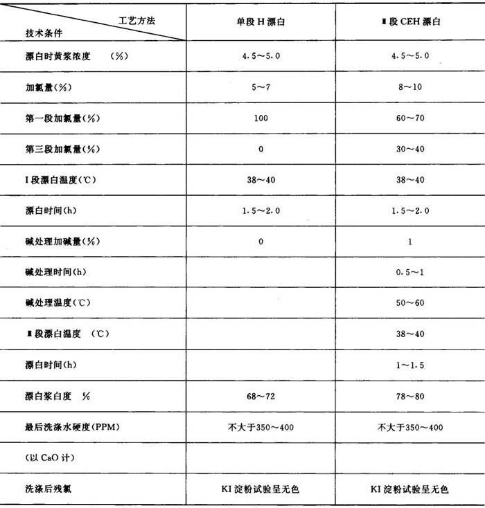 (3)操作要点 ①在未加漂液前,必须尽可能将未漂浆挤干,以提高漂白浆浓度。 ②各种化学品的使用量,加温温度,处理时间,必须按工艺条件严格控制。 ③在漂液贮存槽中要进行漂液有效氯的测定。漂液应透明无悬浮物。 ④洗涤前测定浆料中残氯,作为下次漂白时用氯量的参考,使用量降到最低限度。 ⑤连续漂白时,要求进浆量、通氯加漂液时均需连续稳定均匀,各段中间洗涤时,均忌开快车,浆层厚度要保持一定。 ⑥新麦草漂白比较困难,用二段H,H漂比较恰当,同时应尽力保证洗涤洁净度。 |