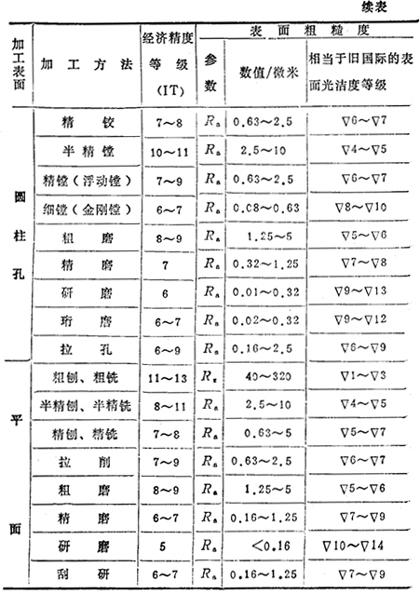 | 释义 | 工艺路线的拟定 1.加工方法的选择 选择加工方法应根据工件的精度、表面粗糙度等质量要求,工件的材料和热处理要求,工件的结构形状和尺寸大小,生产类型等条件,结合车间的设备情况和技术水平,参考已有的典型加工路线和加工方法的经济精度、表面粗糙度的资料进行选择。表14-28列出各种加工方法的经济精度和表面粗糙度。 表14-28 各种加工方法的经济精度和表面粗糙度