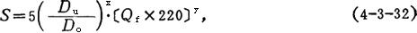 式中 x、y——常数,视旋流器大小而定,小型的x=1.75,y=-0.75;大型的x=4.4,y=-0.44, S由图4-3-39选定